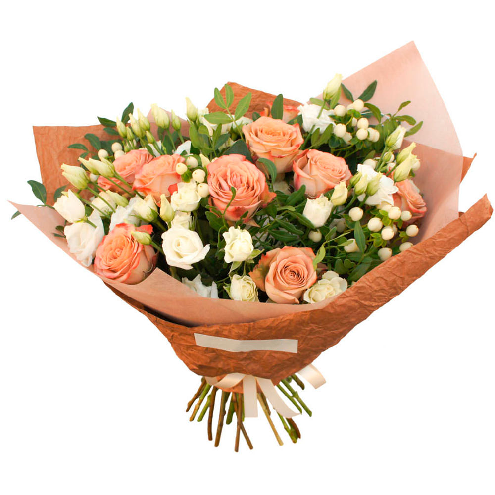| Состав | Кустовые розы, Розы, Эустомы |